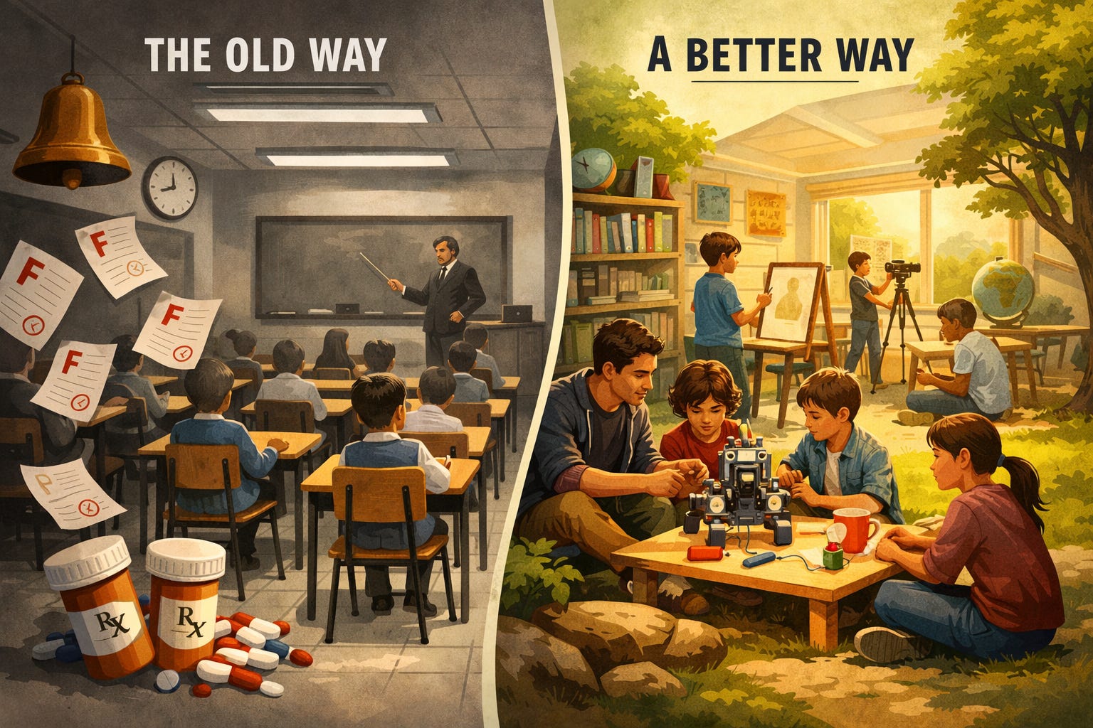 So stop pretending the answer is more testing, more medication, more compliance, and more buildings full of kids sitting still all day while everything we know about learning says it doesn’t work that way.