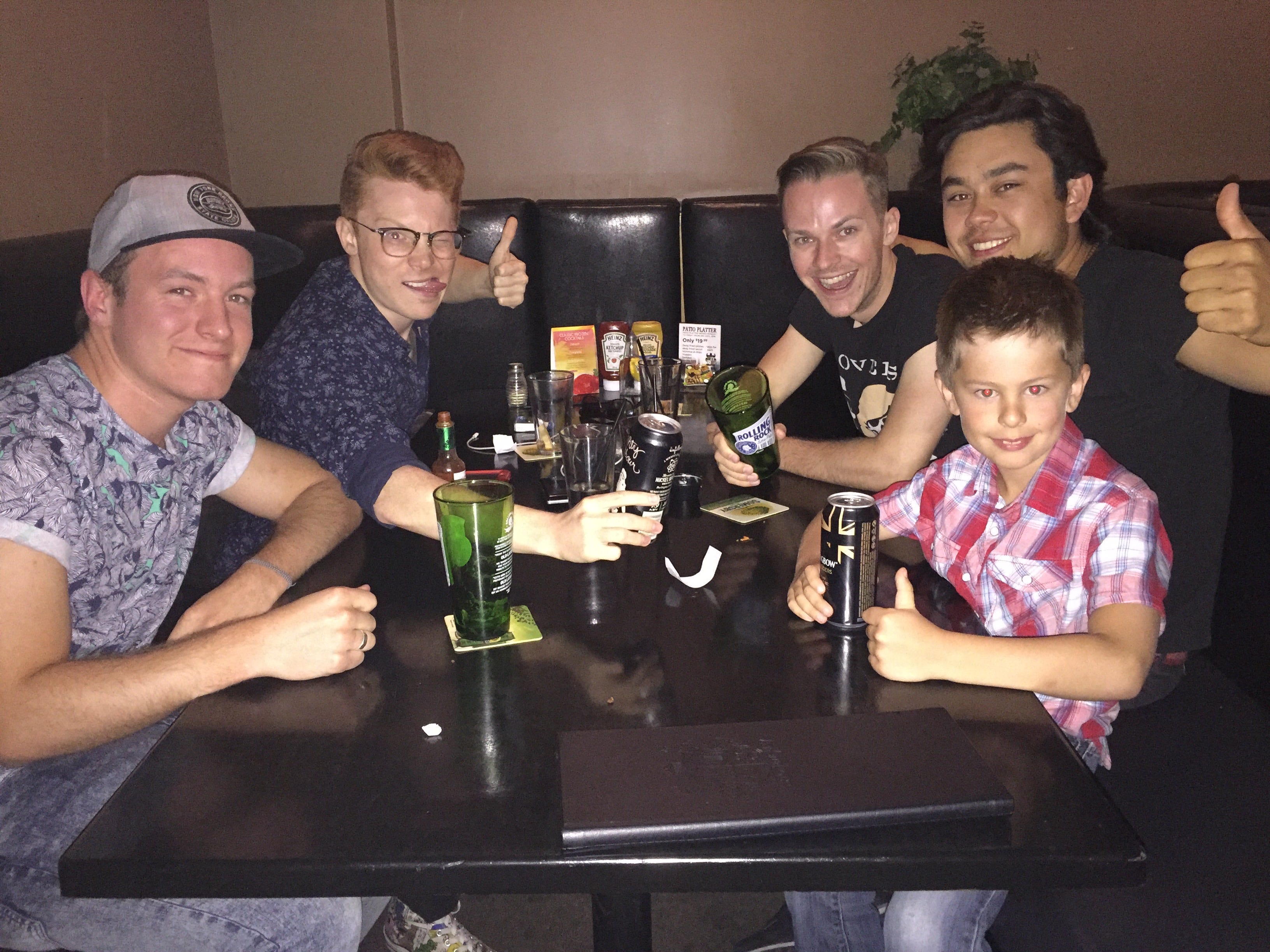 The guys were great right away — genuine, funny, kind. They brought him into their booth, put a beer can in the hands of my four-year-old (empty, of course), and let us snap a few pictures.